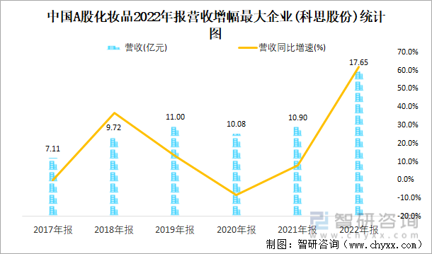 中国A股化妆品2022年报营收增幅最大企业(科思股份)统计图