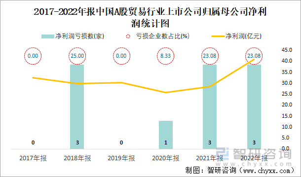 2017-2022年报中国A股贸易行业上市公司归属母公司净利润统计图