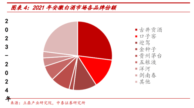 2022年的销售数据显示,古井贡酒的省内外销售占比分别约为60%和40%,其省外市场也有机会冲击百亿规模。