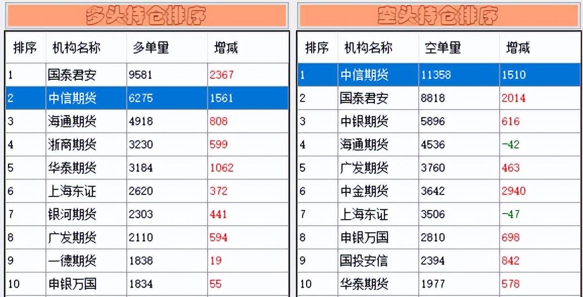 先来看下对下一个交易日有预判作用的“神器”——中信期货在股指期货上的增减持情况。它在沪深300股指期货上多单方面增仓1561手,空单方面增仓1510手,给出了“偏多”的信号——预判失误。