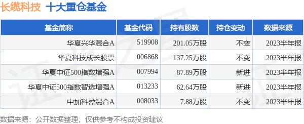 重仓长缆科技的前十大基金见下表:
