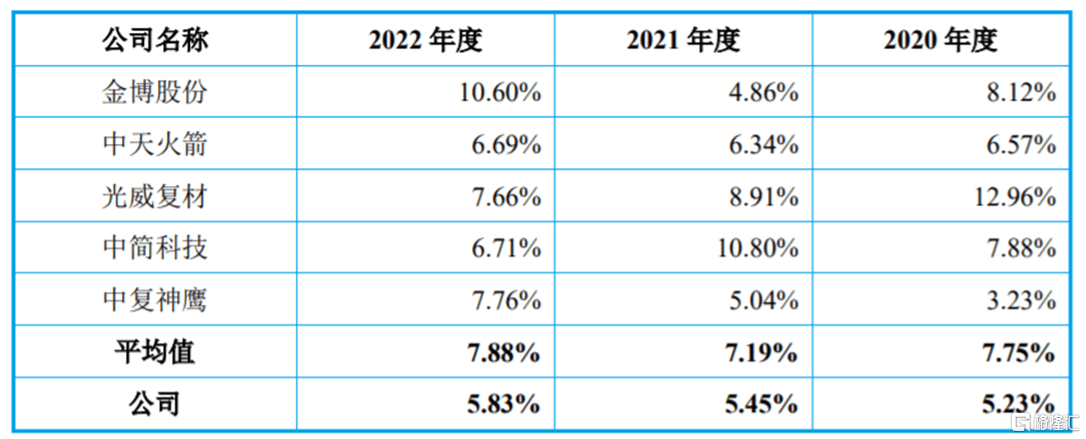 2020年至2022年,公司的研发费用分别为711万元、1652.19万元、2555.30万元,研发费用占营业收入的比例分别为5.23%、5.45%、5.83%,尽管公司的研发投入呈上升趋势,但研发费用率依然明显低于同行业可比上市公司平均水平。