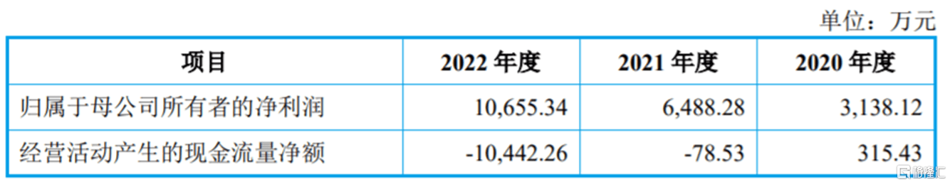 受应收账款和存货规模上升等影响,公司的经营活动现金流明显承压。2020年至2022年,米格新材经营活动产生的现金流量净额分别为315.43万元、-78.53万元、-1.04亿元,存在为负或低于同期归属于母公司所有者净利润的情况。