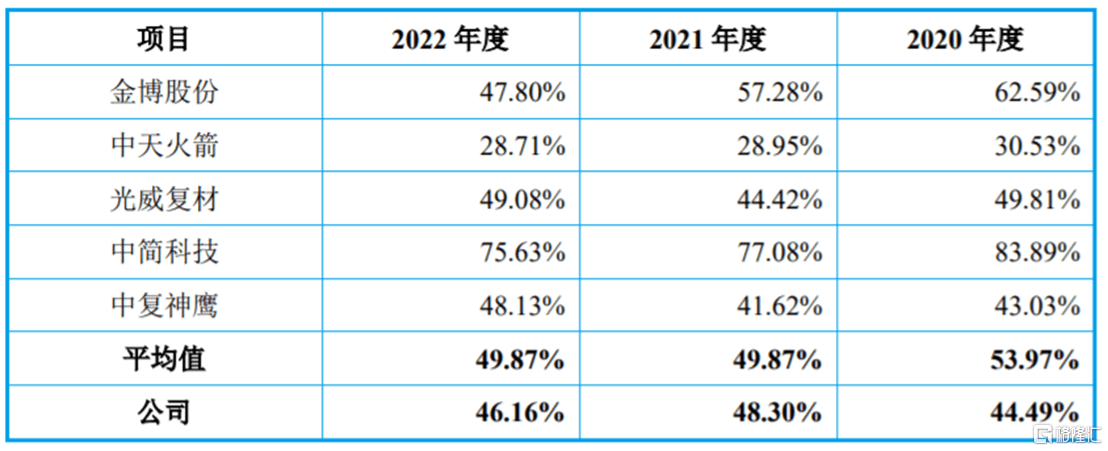 公司综合毛利率与同行业可比上市公司对比情况,图片来源:招股书