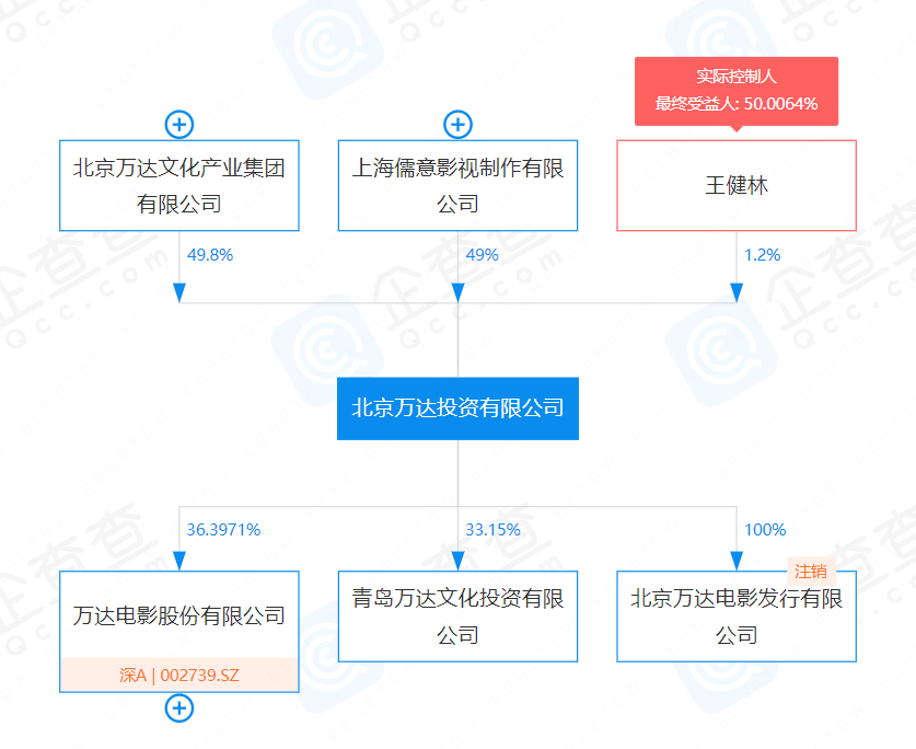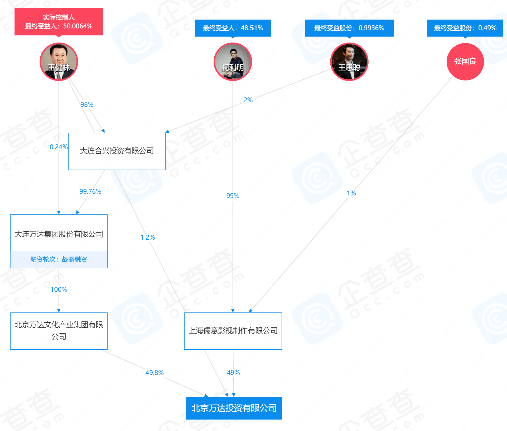 交易完成后,北京万达投资由万达文化产业集团持股49.8%,由儒意影视持股49%,王健林持股1.2%。