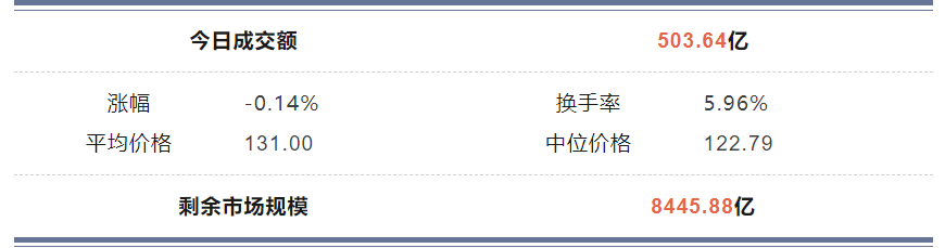 2023年7月24日转债市场成交额503.64亿元,换手率5.96%。