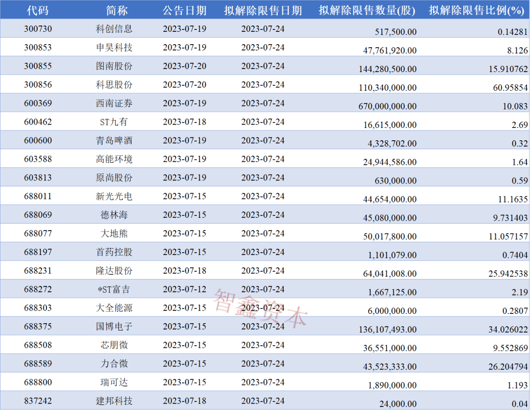 2023年7月24日上市公司解禁名单有21家。