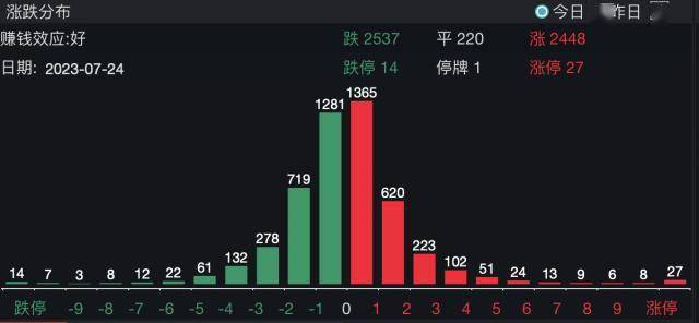 7月24日,两市共有涨跌各半,其中27股涨停,14股跌停,4股连板,昨日涨停收益0.43%,短线情绪降温。