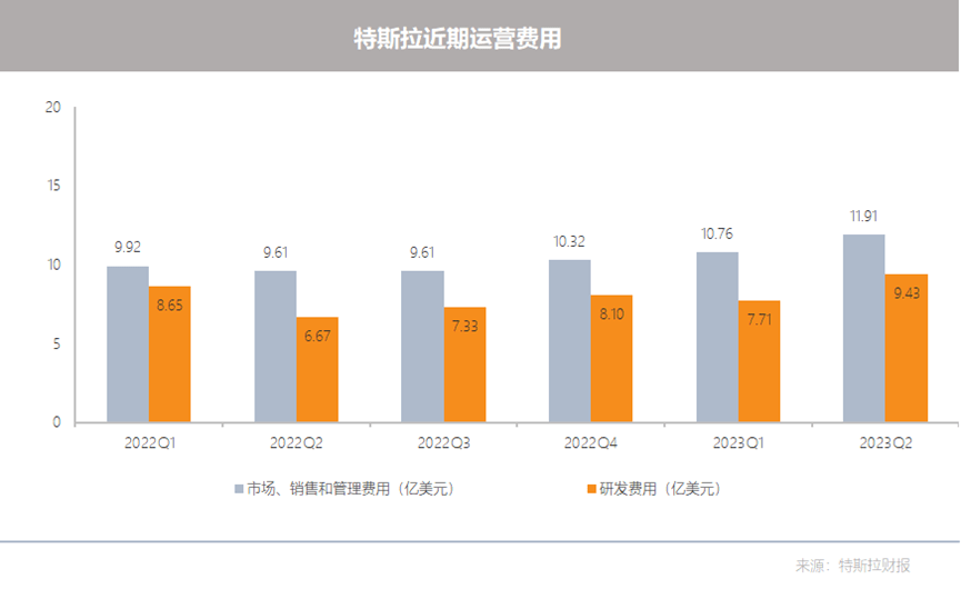 另一方面,为了维持人工智能项目和4680电池的生产增长,的运营费用在本季度有所增加。