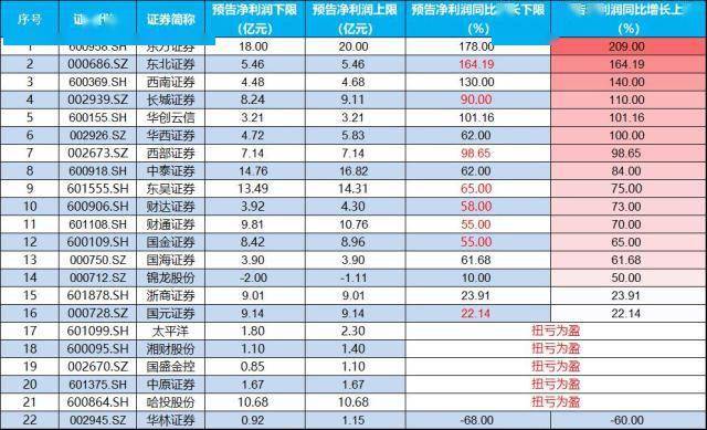 而二季报显示上市券商盈利延续增长态势,目前已有22只披露半年度业绩预报/快报,21家预喜,占比高达95.45%。其中5家扭亏为盈,6家盈利预增达到或超过100%,最高预增209%。