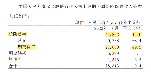 正是在此改革契机下,今年上半年不少保司也显现出一定效果。数据显示,人保寿险的长险首年保费收入为418.68亿元,同比增长14.6%,其中,期交首年保费收入为216.30亿元,同比大增49.9%,而趸交保费收入为202.38亿元。
