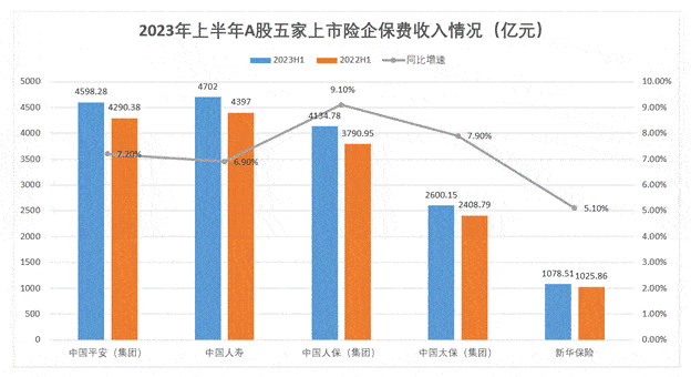 随着中国太保披露保费收入公告,A股五大上市险企今年上半年保费收入均已浮出水面。