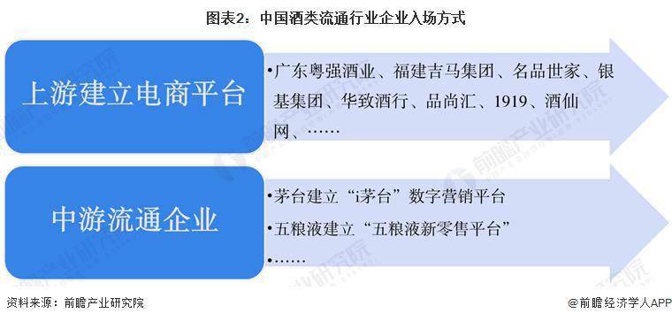 目前,我国酒类流通企业入场方式主要以自建为主,从小型酒类流通企业通过并购同类企业,拓宽渠道,如青青稞酒收下中酒网,1919 酒类直供又宣布战略并购购酒网等 ; 上游生产制造企业通过自建电商平台拓宽流通渠道,如茅台建立 "i 茅台 " 数字营销平台,五粮液建立 " 五粮液新零售平台 " 等。