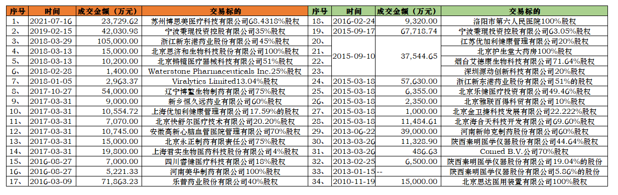 2009年成功登陆创业板后,乐普医疗加速了收购兼并进程。据同花顺统计,2010年至2021年,乐普医疗收购兼并企业多达34家,成交金额67.63亿。