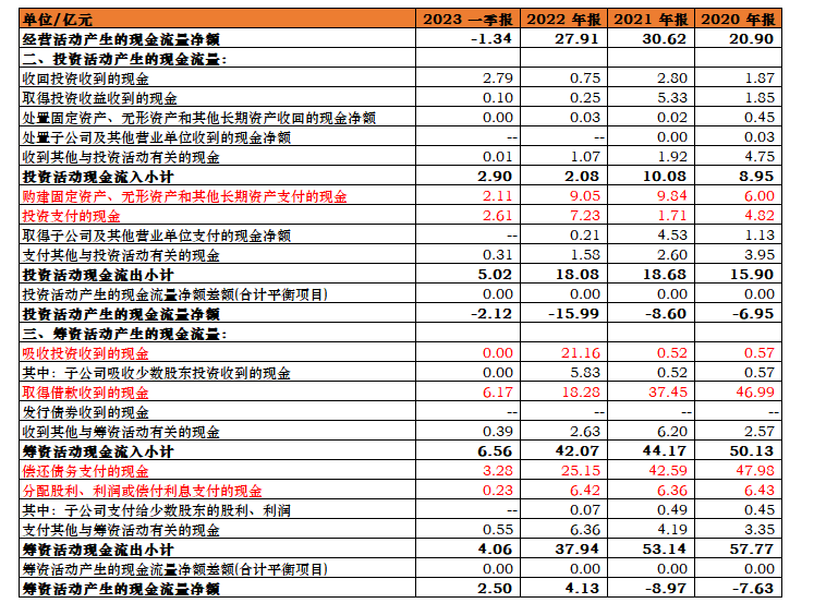 2020—2022年,乐普医疗每年偿还债务所需支付的现金分别为47.98亿、42.59亿及25.15亿;分配现金股东所需支付的现金分别为6.43亿、6.36亿及6.42亿。
