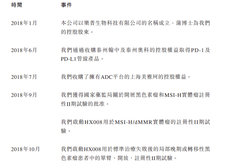 乐普生物于2018年成立,成立半年乐普生物便收购了泰州翰中及泰州奥科的控股权益取得PD-1及PD-L1管线产品;2018年7月,收购上海美雅珂获得ADC业务。