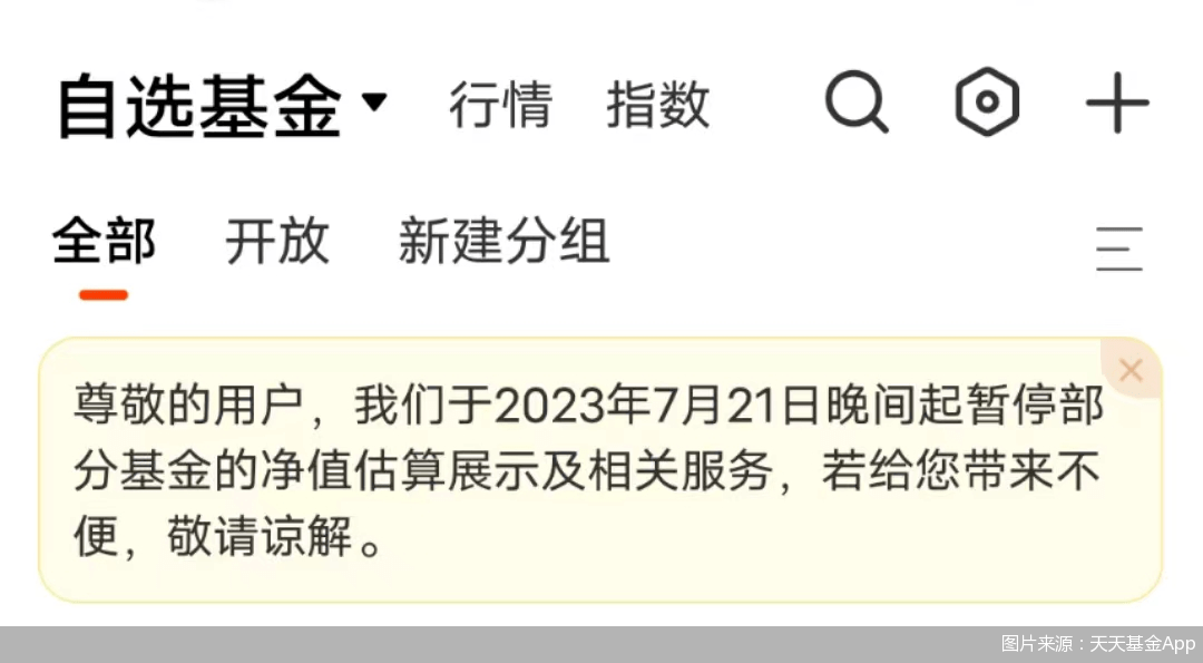 北京商报记者关注到,当前,规模较大的第三方基金销售平台蚂蚁基金、腾讯理财通、天天基金等均在官网或App公告称其已下线基金盘中净值实时估算服务。截至目前,仅部分指数类基金暂不受影响,仍可观看实时净值。