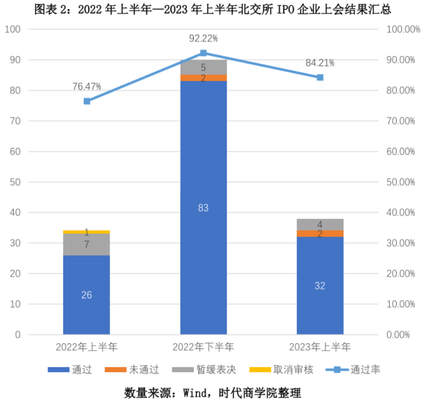 图表2:2022年上半年—2023年上半年北交所IPO企业上会结果汇总