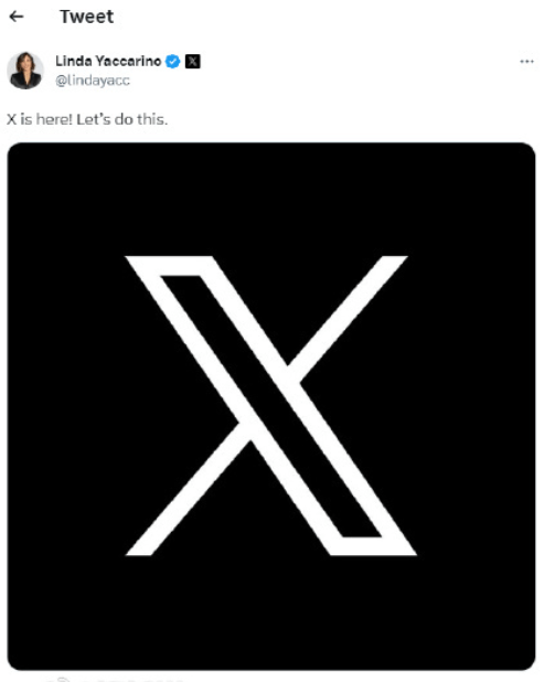推特首席执行官Linda Yaccarino发文宣布,推特Logo已变更为X。昨夜凌晨,马斯克在推特上宣布,推特即将更名为X,网址也将迁移到X.com。此前,马斯克还在推特上发布了一则关于新Logo的投票,共有黑色、灰色两个选项。