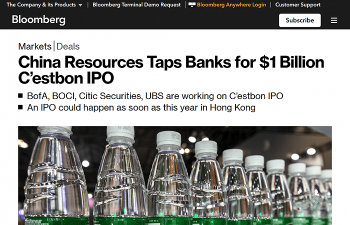 近日,据彭博社报道,华润集团正筹备旗下子公司华润怡宝港股上市事宜,并与美国银行、中银国际、中信证券、瑞银等四家银行机构合作,预计最快能够在今年完成上市,其IPO募资规模可能在10亿美元(约70多亿人民币)。