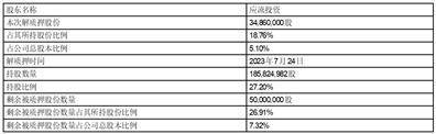 截止2023年7月24日,应流投资及其一致行动人累计质押股份情况如下: