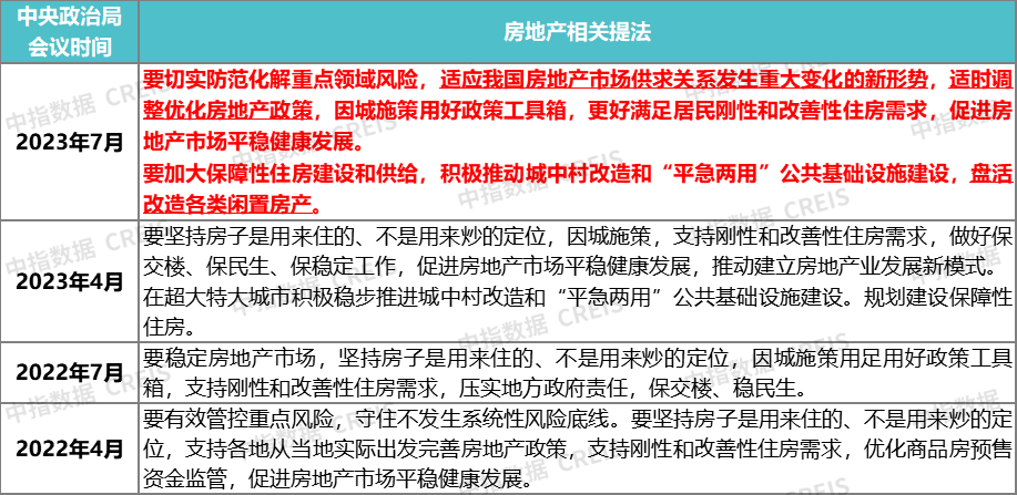 表:2022年以来中央政治局会议中涉及房地产的内容梳理