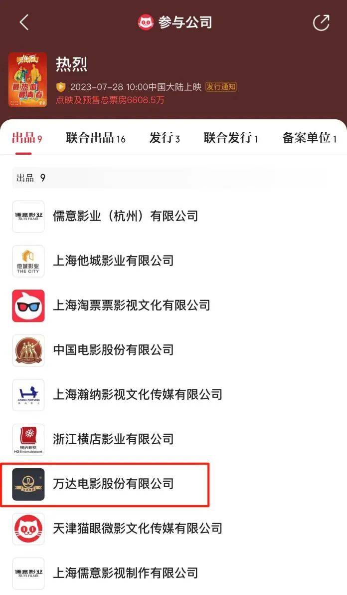 我们发现,正在进行点映的大鹏导演新作《热烈》出品阵容中,就已经出现了万达电影的名字。