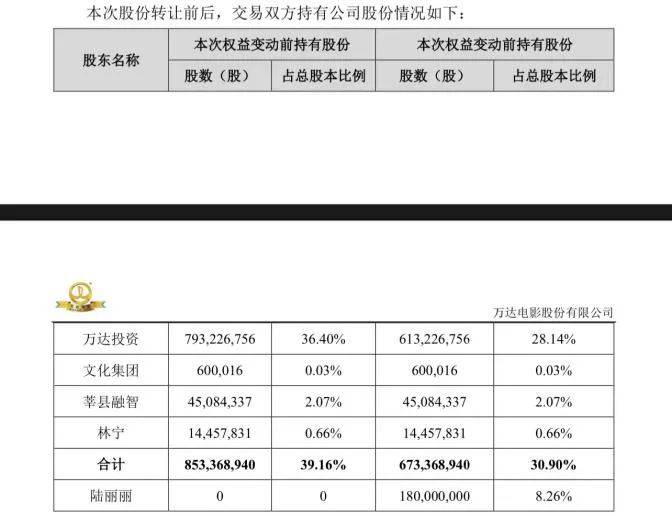 (图源:万达电影《关于控股股东协议转让部分股份暨权益变动的提示性公告》)