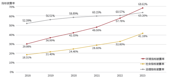 主要ESG指标披露率(2018-2023)