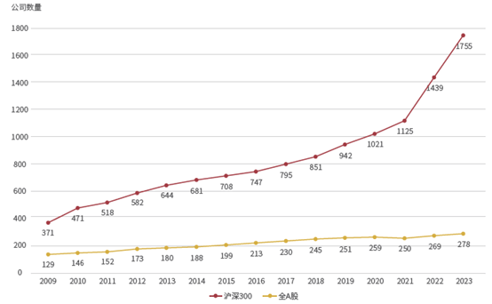 A股ESG报告发布统计(2009-2023)