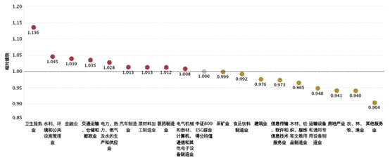 从行业分布来看,2023年中证800成分股所有行业ESG评级均有提升,得分最高的三个行业依次为:卫生服务业;水利、环境和公共设施管理业;金融业。平均得分最低的三个行业依次为:其他服务业;农、林、牧、渔业;房地产业。