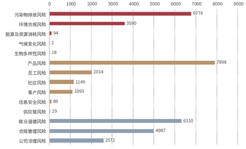 从风险事件类型来看,污染物排放和环境合规是上市公司环境维度面临较大的风险;产品(服务)风险和员工权益负面事件是社会维度面临较大的风险;商业道德风险和合规管理风险是公司治理维度面临较大的风险。