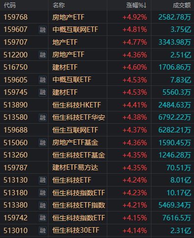 受行情提振,多只港股相关ETF涨幅居前,其中恒生科技ETF(513130)涨幅一度高达4.8%,目前涨近4%。成交额方面,截至北京时间9点55分已突破7亿元。