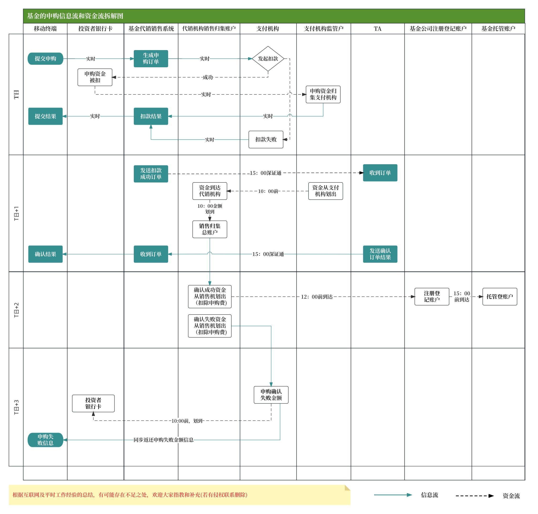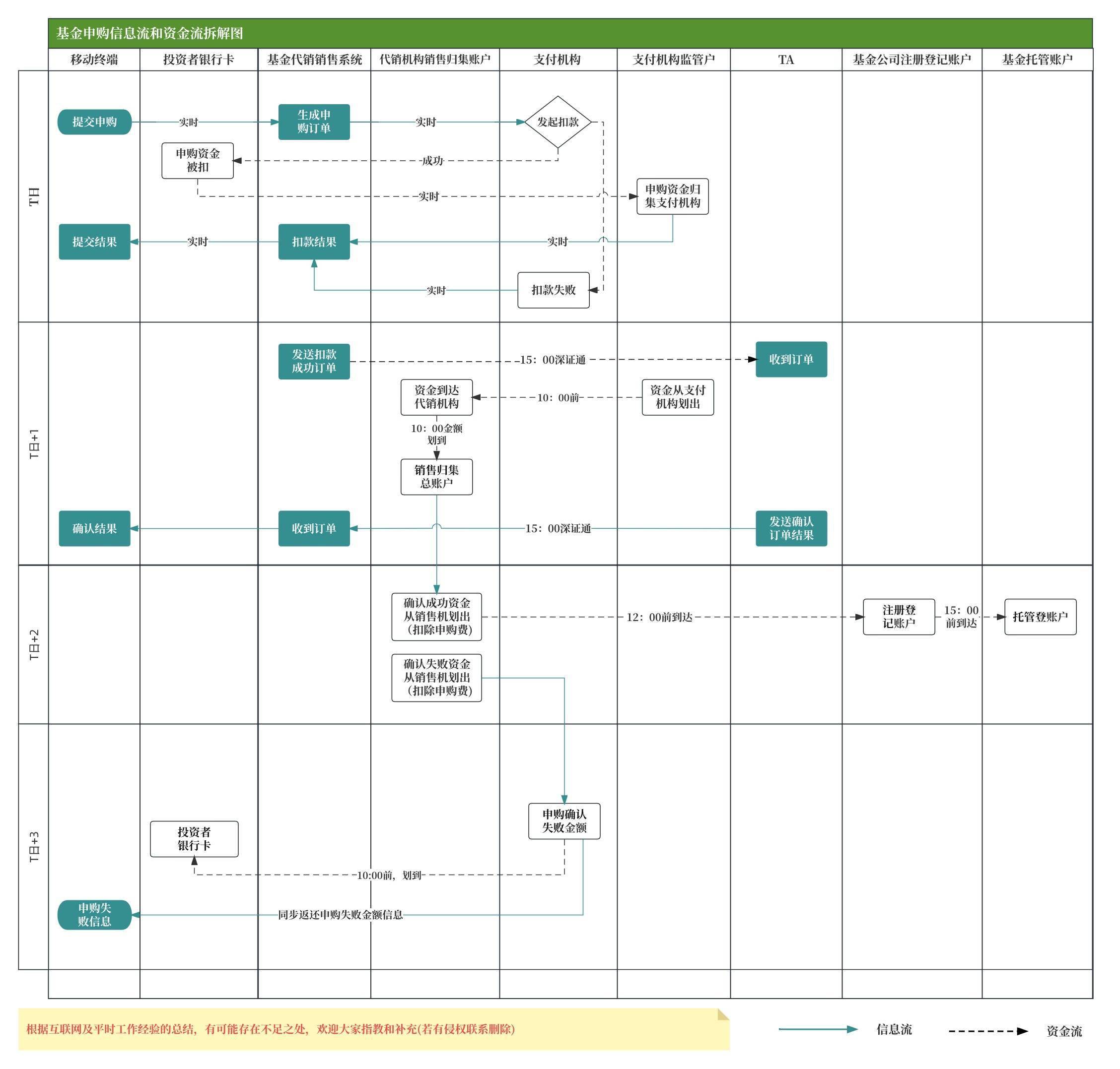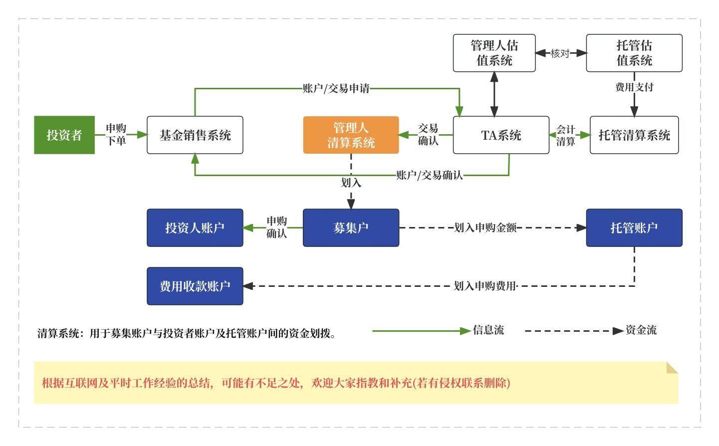 小结:以上是在基金申购过程中涉及到的知识点,现以开放式基金+ 网上现金认购为例详细对信息流和资金流进行拆解。