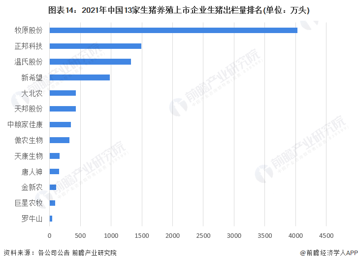 行业竞争格局:牧原股份生猪出栏量遥遥领先