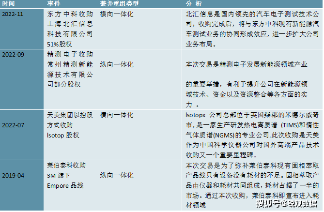 图表:中国科学仪器行业兼并重组事件分析