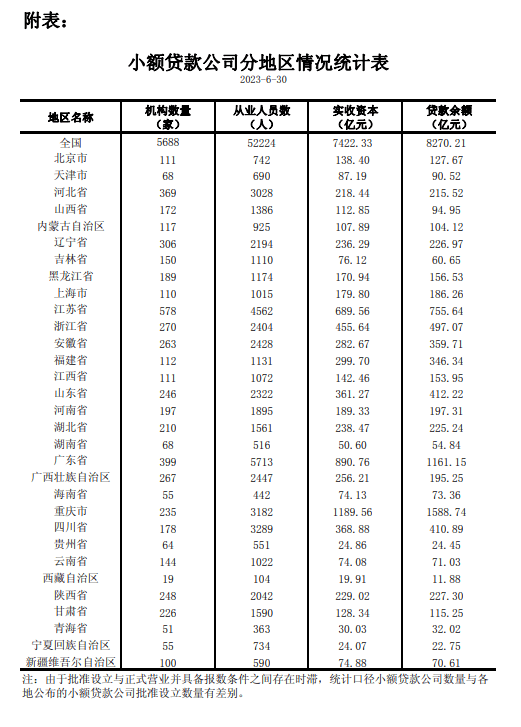原标题:央行:截至6月末,全国共有小额贷款公司5688家