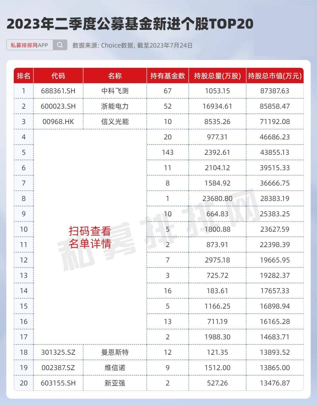 根据Choice数据显示,二季度公募基金新进个股共有590只,其中新进总市值排在前三位的分别是中科飞测、浙能电力、信义光能,新进持仓市值分别为8.74亿元、8.59亿元、7.12亿元。