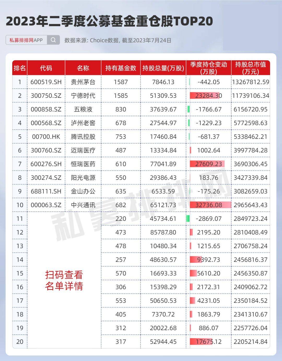 2023年公募基金二季报的披露已经落幕,随之曝光的是二季度公募基金重仓股。