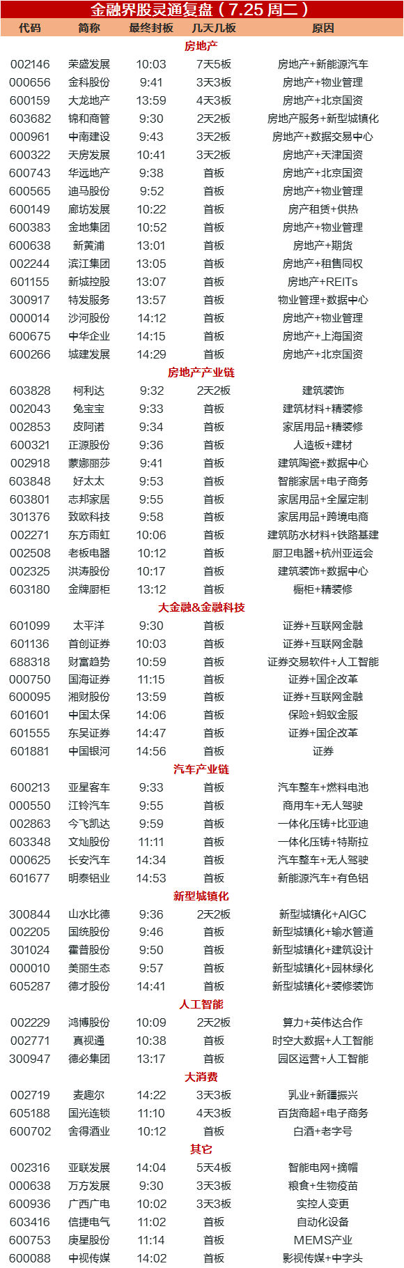 涨停梯队:荣盛发展(7天5板)、金科股份(3天3板)、大龙地产(4天3板)