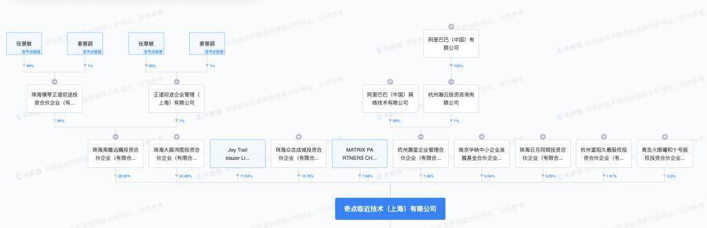 天眼查 App 信息显示,7 月 24 日,奇点临近发生工商变更,股东新增阿里旗下杭州灏星企业管理合伙企业(有限合伙),持股比例为 7.46%。