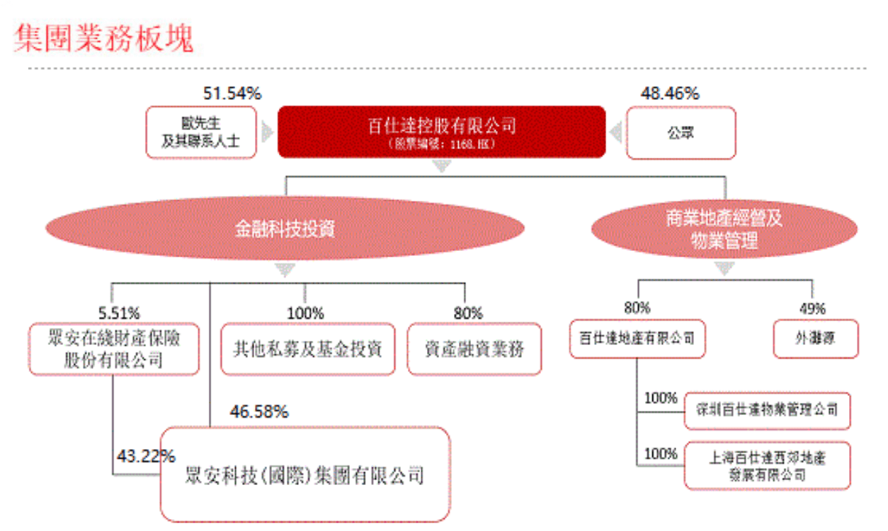 截至2022年末,百仕达控股仍通过其旗下“深圳日讯网络科技股份有限公司”这一主体持有众安在线5.51%股份,而欧亚平及其关联方持有百仕达集团51.54%股份。
