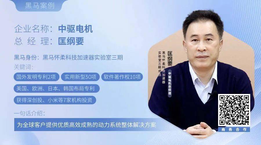 匡纲要:我是黑马怀柔科技加速器实验室三期成员,深圳市中驱电机有限公司总经理匡纲要。深圳中驱电机有限公司是国家高新技术企业,国家级专精特新小巨人,拥有业界最先进的高速直流无刷生产线。我们建立了自己的标准实验室,致力于为客户提供整体解决方案,专业研发生产系列高速直流无刷电机、驱动控制系统,产品广泛应用于个人护理、高速吹风桶、发梳、卷发棒、清洁类产品。