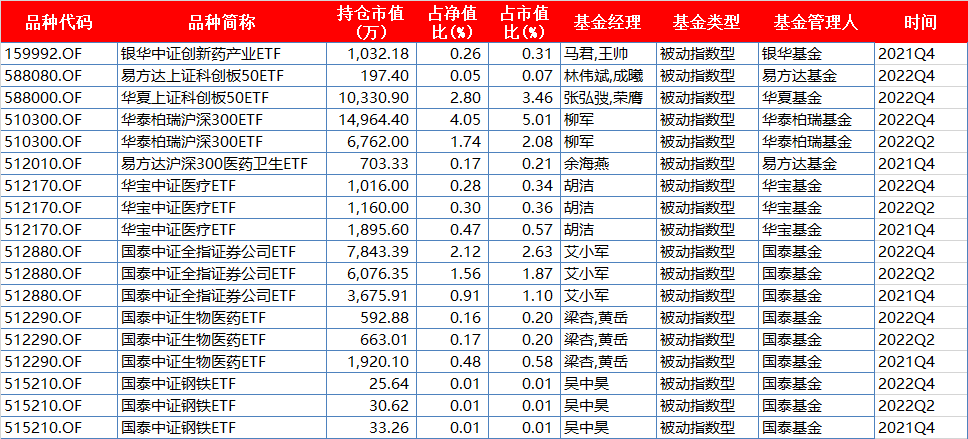 来源:东方红欣和平衡两年混合(FOF)重仓股(2022年基金年报)