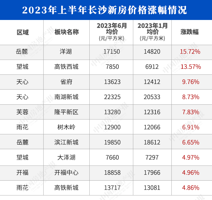 有市场人士分析称,2023年上半年长沙洋湖板块之所以价格涨幅最明显,一方面是洋房、叠拼类产品集中供应,另一方面是近年来该板块地价上涨过快所产生的房价上涨预期。