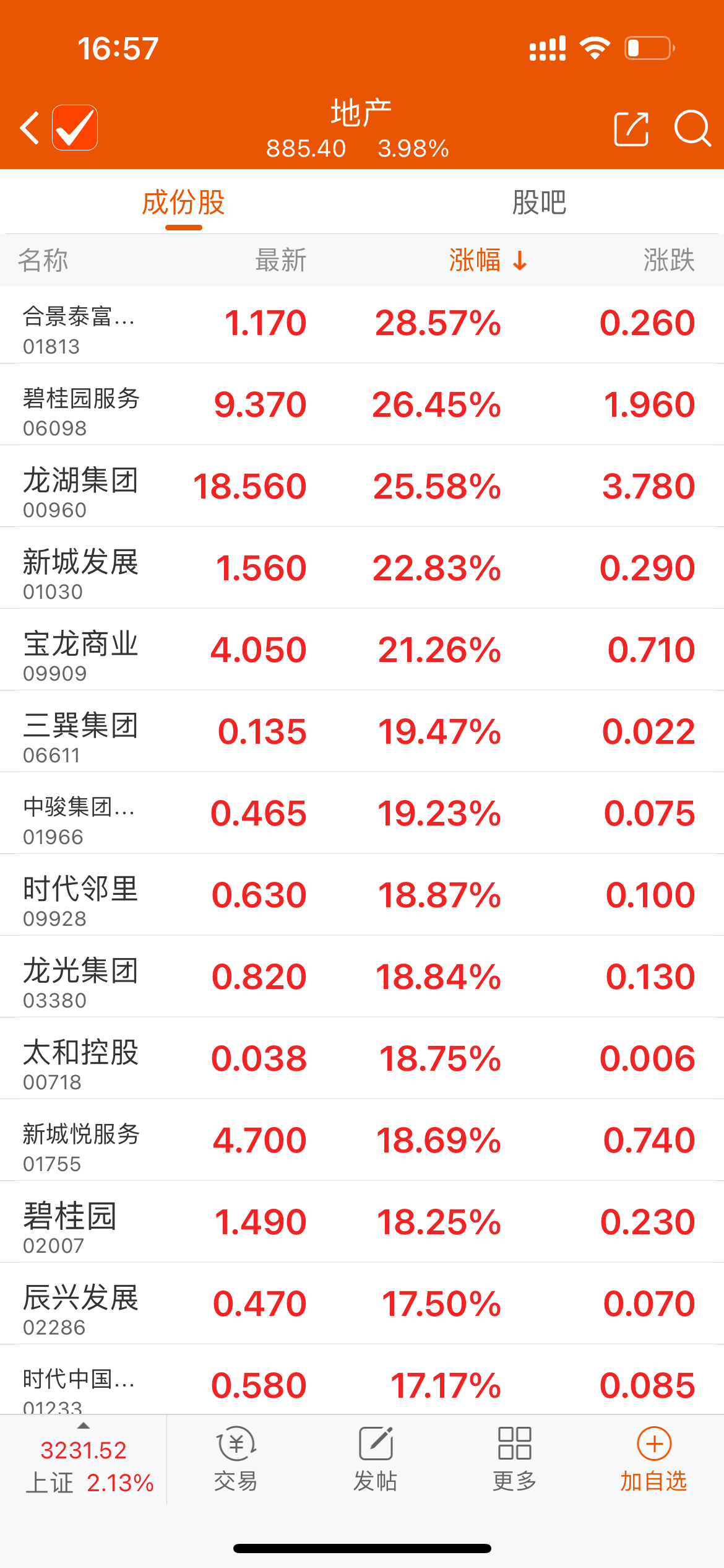 地产股久违地全线飘红,领涨大盘。