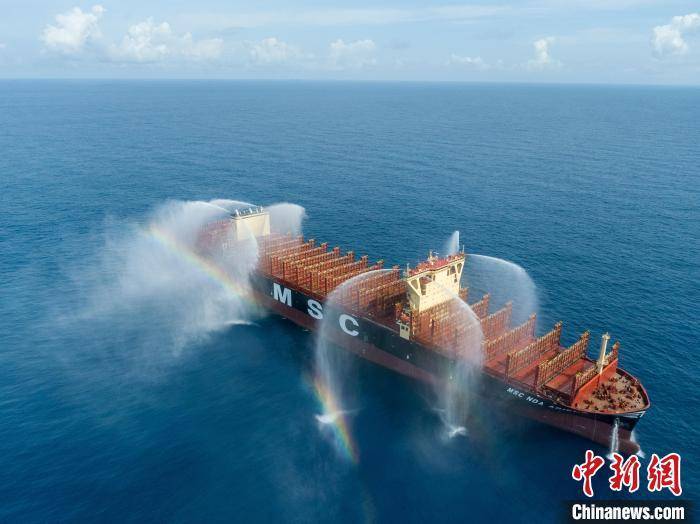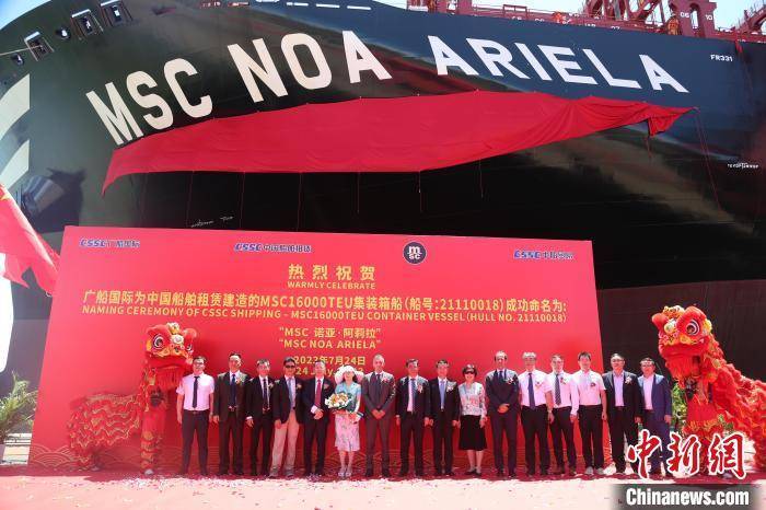 中新网广州7月24日电 (郭军 彭永桂)由中国船舶集团旗下广船国际联合中国船舶工业贸易有限公司建造的MSC16000TEU集装箱船1号船24日在广州南沙命名交付。