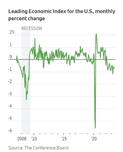 尽管如此,仍有令人担忧的理由。世界大型企业联合会上周表示,其领先经济指数连续第15个月下跌,表明未来经济活动将放缓。这是该指数自2007年春季至2009年初以来最长的连续下跌趋势。美国经济于2007年12月陷入衰退,直到2009年6月才摆脱衰退。