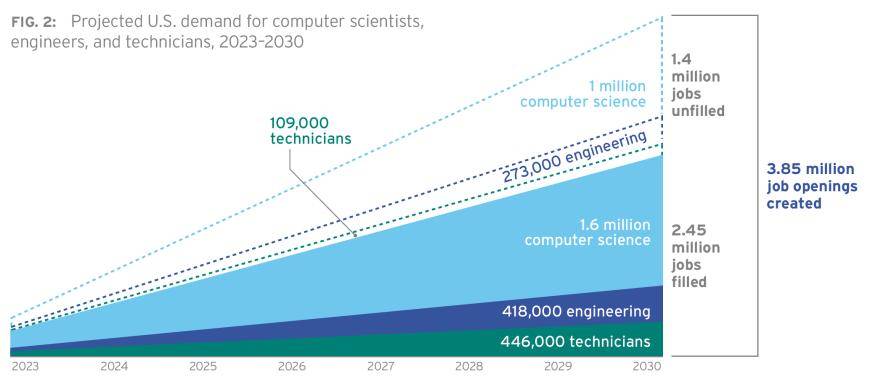 到2030年,美国预计将新增385万个需要精通技术领域的工作岗位,其中140万个可能无人可用。