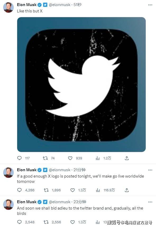 也就是说,从收购成功的那一刻开始,马斯克就已经考虑将标志改为“X”了。